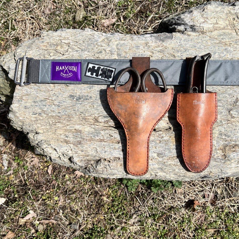 剪定鋏、大久保鋏、目切り鋏、ノコギリ等を身に付けて